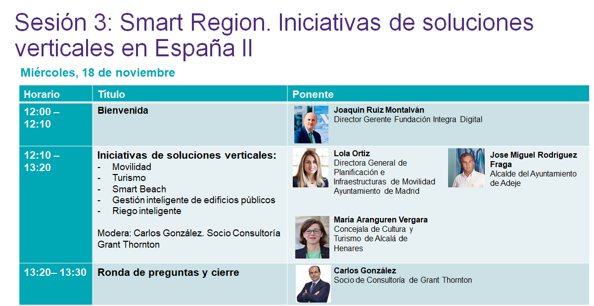 Webinar del ciclo "Jornadas Smart Region en la Región de Murcia", organizado por la Fundación Integra en colaboración con la empresa Grant Thornton y la Región de Murcia, con el objetivo de dar a conocer qué se define como Smart Region y qué iniciativas de Territorios Inteligentes se han abordado en España, de la mano de sus creadores.